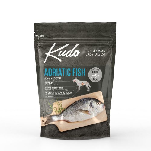Σύνθεση: Φρέσκος και αφυδατωμένος σολομός, πέστροφα, ρέγγα, εποχικά ψάρια και αυγό: 77%. Το φρέσκο αντιστοιχεί στο 55% του συνόλου της τροφής. Λαχανικά, σπόροι, βότανα, μούρα, φρούτα ,βιταμίνες και ιχνοστοιχεία 23%. (θερμοκρασία παραγωγής: 90°C)
